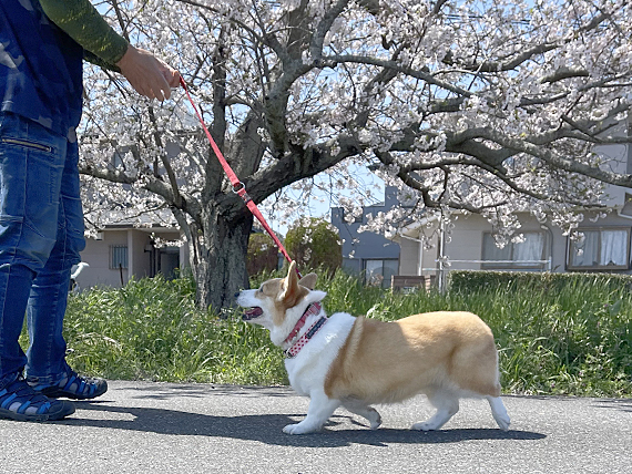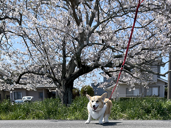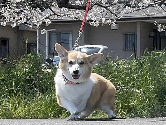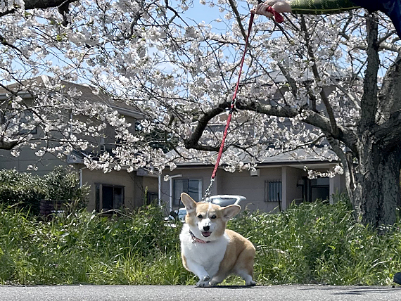近所の桜の前で毱ちゃんの写真を撮っていたので